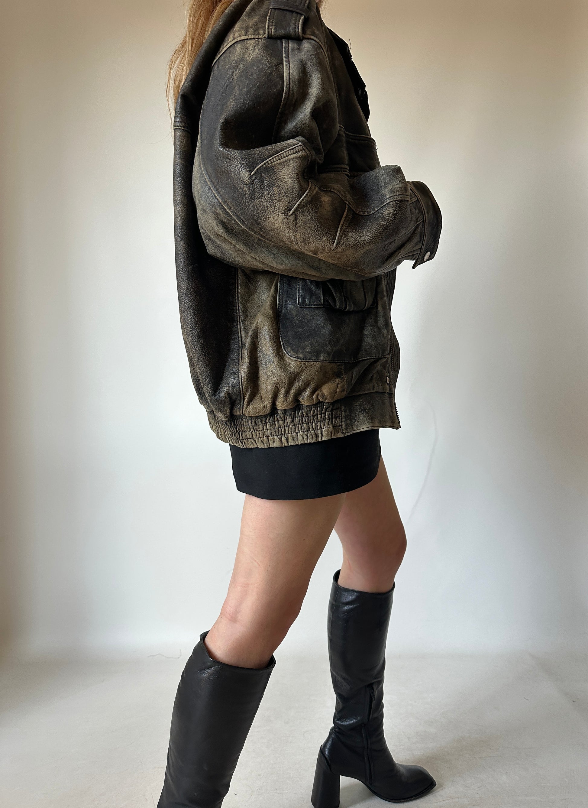 Unique distressed leather bomber